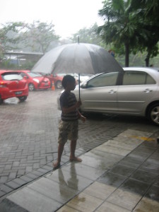 Jag fascineras av människors uppfinningsrikedom när det gäller att tjäna några rupiah. Eller vad sägs om alla ”paraply-killar” som dyker upp så fort det börjar regna? De står vid affärer, hotell och restauranger och ser till att de som kan betala en liten slant håller sig torra på vägen till bilen eller bussen. En annan vanlig syn är ”trafikpoliser”, vanliga medborgare som står mitt i trafiken och dirigirerar passerande fordon. De som med deras hjälp kan passera lättare betalar ofta ett par tusen rupiah (1-2kr). Häromdagen besökte jag ett bostadsområde för Jakartas medelklass och där fick ”take-away” mat en helt ny innebörd. Maten levererades inte bara vid dörren, utan lagades utanför dörren!